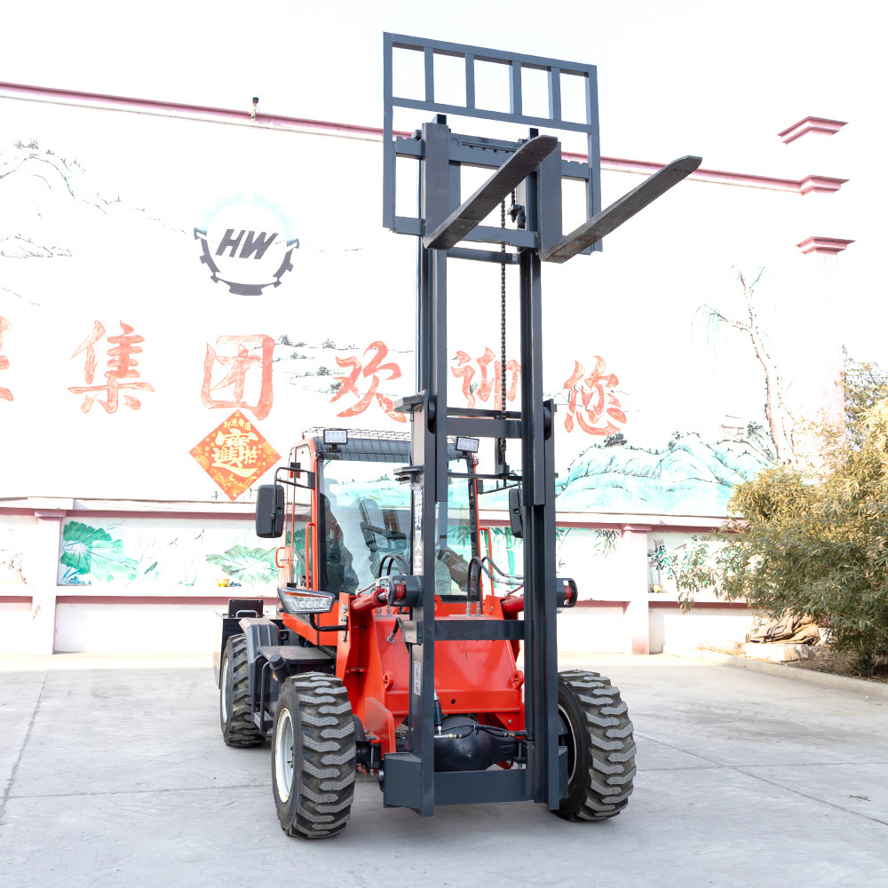 - Caractéristiques:Camions élévateurs à quatre roues motrices, chariots élévateurs à mât sur terrain accidenté, chariots élévateurs sur terrain accidenté